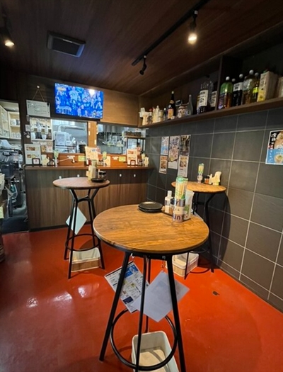 下京区のホーリーハウス2階にあるこのお店は、立ち飲みカウンターのほか、テーブル席もあって気分や人数に合わせて選べるのが嬉しいポイント。