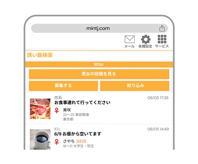 Jメールというのを使ってましたが「誘い飯」という食事デートコーナーが新鮮そうなのです。